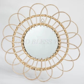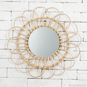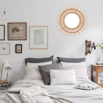 Rattanowe okrągłe lustro do makijażu innowacyjna dekoracja toaletka ścienna do łazienki