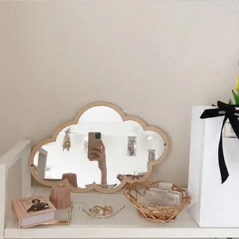 Drewniana ramka akrylowe lustro do makijażu Ins-nieregularny kształt chmury lustro ozdobne kosmetyczny przyrząd kosmetyczny wystrój ścian