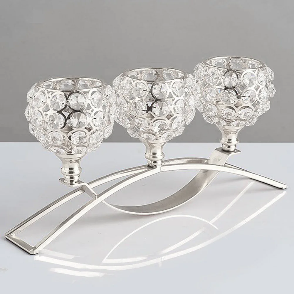 Ten świecznik jest bardzo złożony, elegancki i wyjątkowy, z 3 kryształowymi koralikami na gładkich błyszczących metalowych prętach przewijania.
