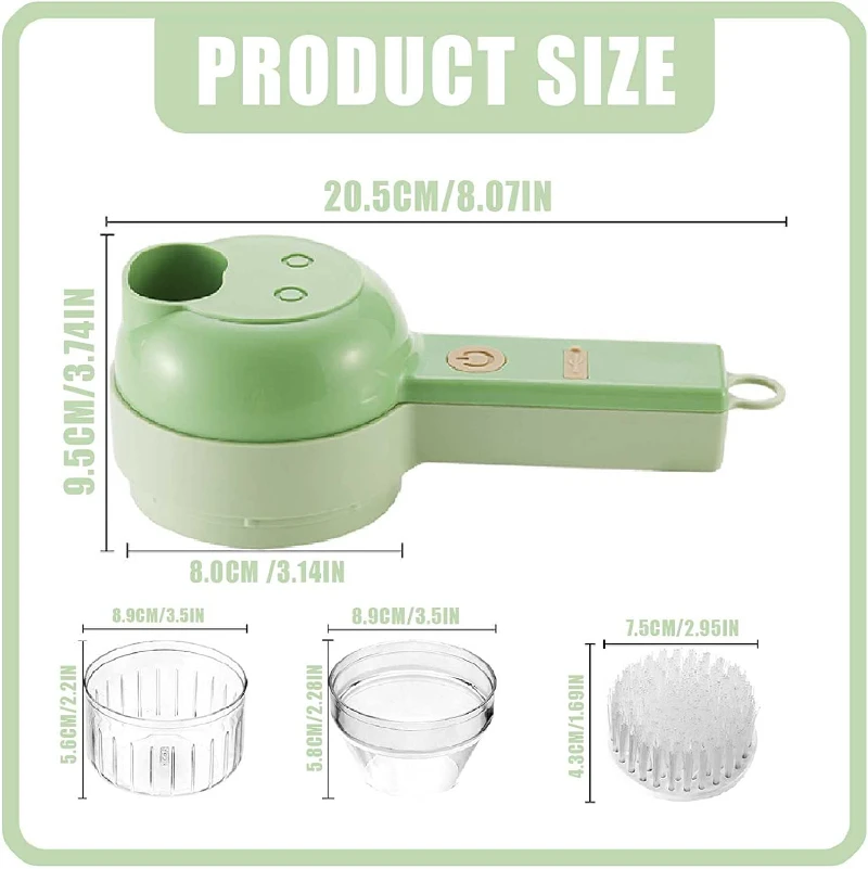 【4 w 1 elektryczna krajarka do warzyw 】-ręczna elektryczna krajarka do warzyw zawiera funkcje 4 w 1, takie jak krojenie, gotowanie, obieranie i szczotka do czyszczenia. Dzięki niemu możesz mieć elektryczną krajarka do warzyw i elektryczna maszynka do mięsa oraz elektryczna szczotka do czyszczenia w tym samym czasie, wielofunkcyjny zestaw