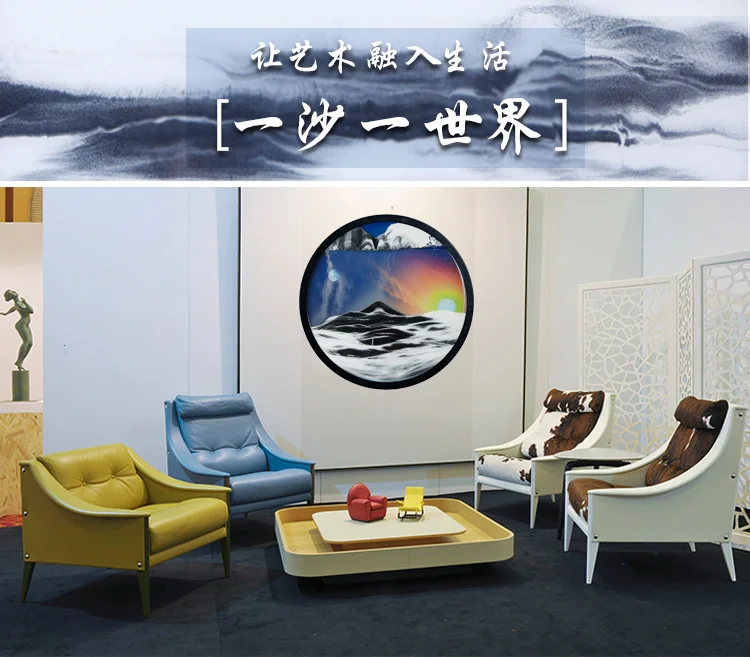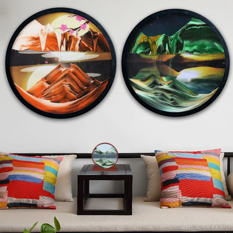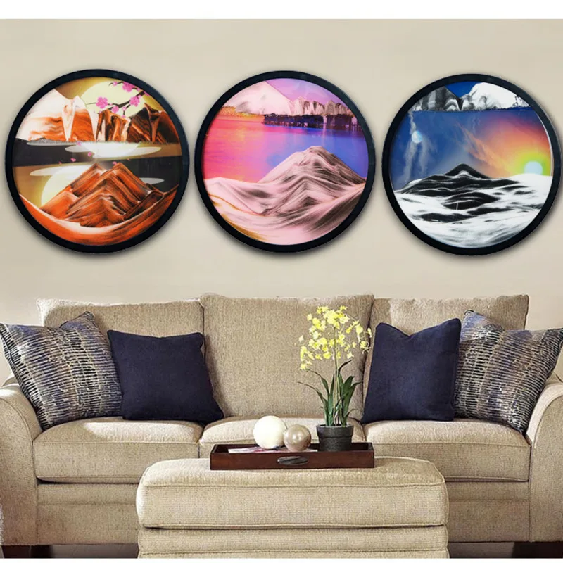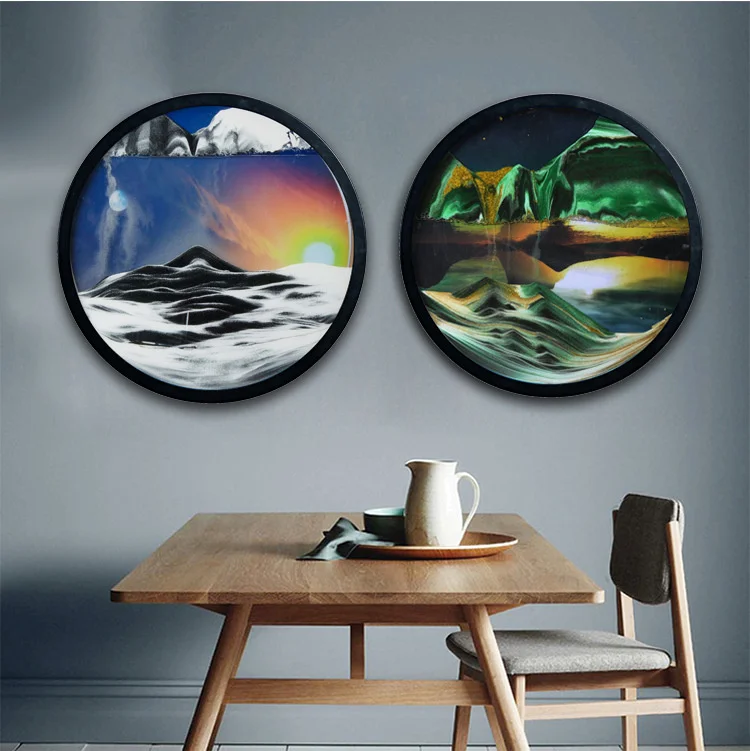 7/10 cal ściany wiszące przeprowadzka piasku artystyczny obraz okrągłe szklane głębinowych Sandscape w ruchu Flowing piasek rama piasek malowanie