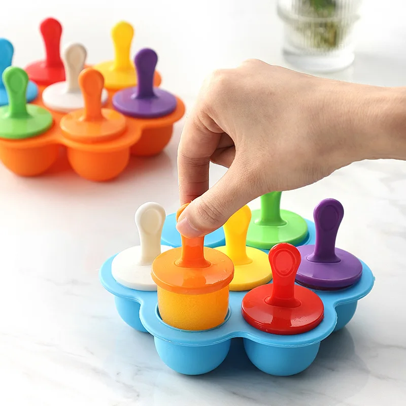 7 otworów lodu forma na krem dla dzieci forma do lodów na patyku suplement diety pudełko do pakowania silikonowe tacka do lodu lody na patyku formy owoce wstrząsnąć akcesoria