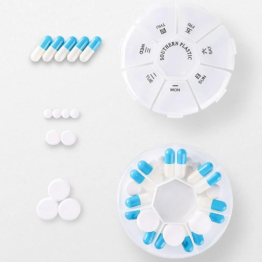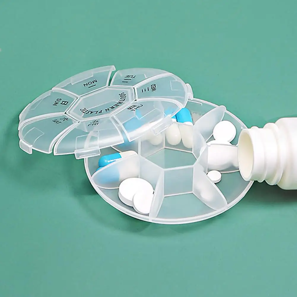 7 siatek okrągły wzór, używany do przechowywania pigułek, leków, słodyczy itp.