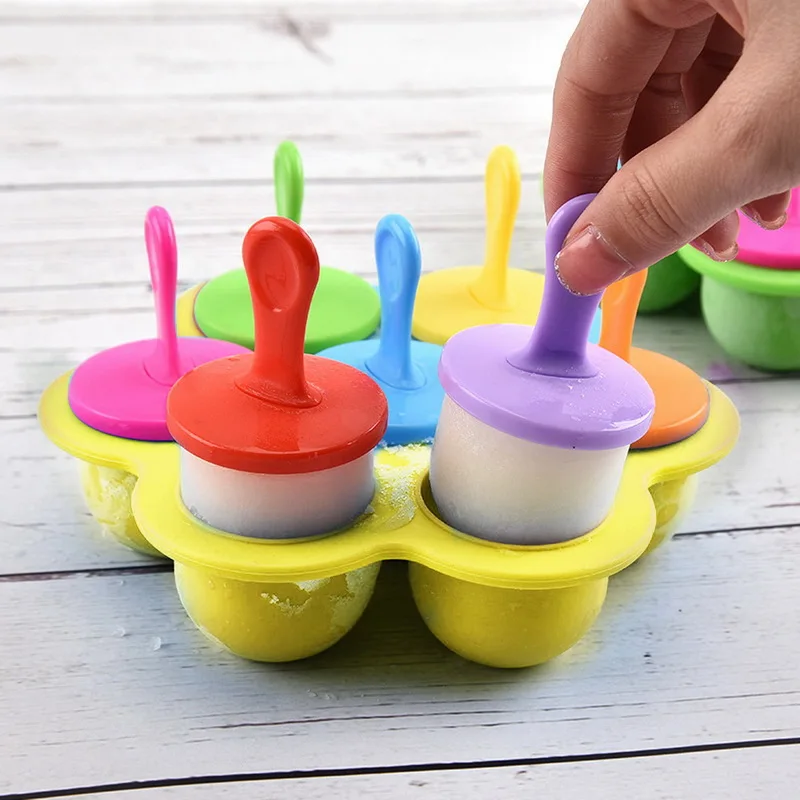 7 wnęka forma na krem lodowy forma do lodów na patyku silikonowy przyrząd do robienia kulek z lodu formy z patyczkami DIY foremki do lodu kuchennego z pokrywką do czekolady