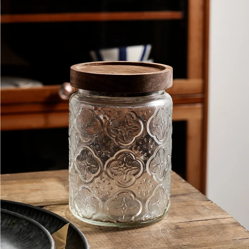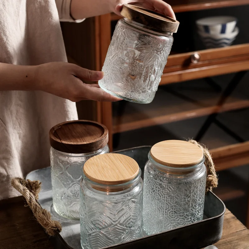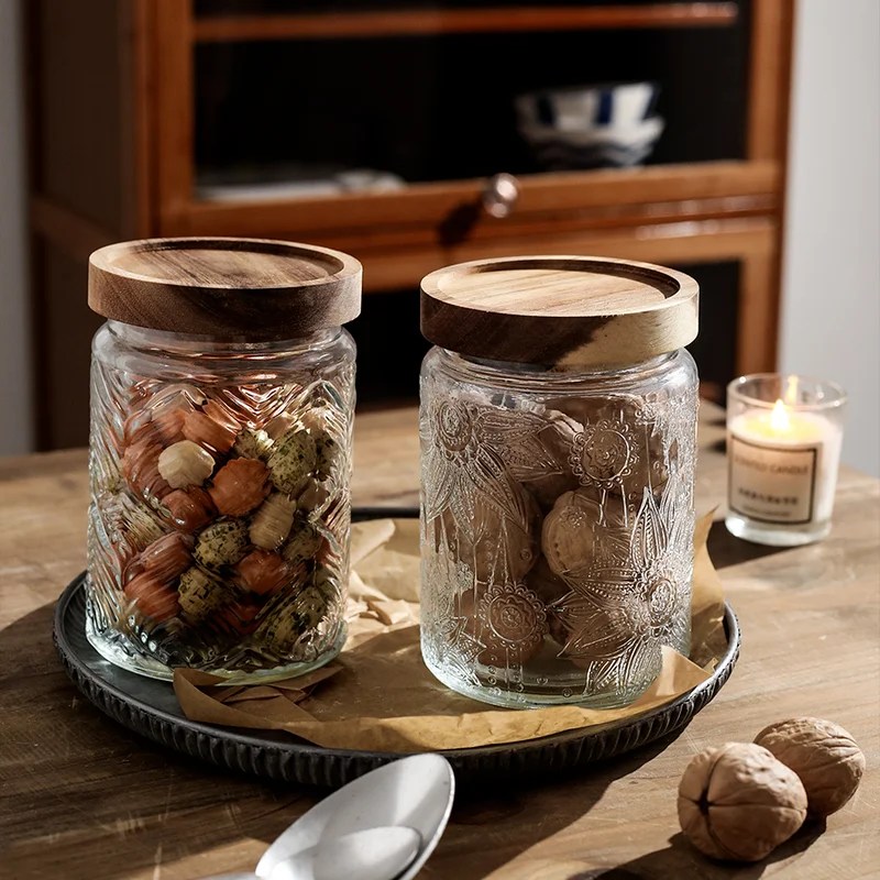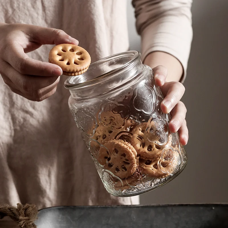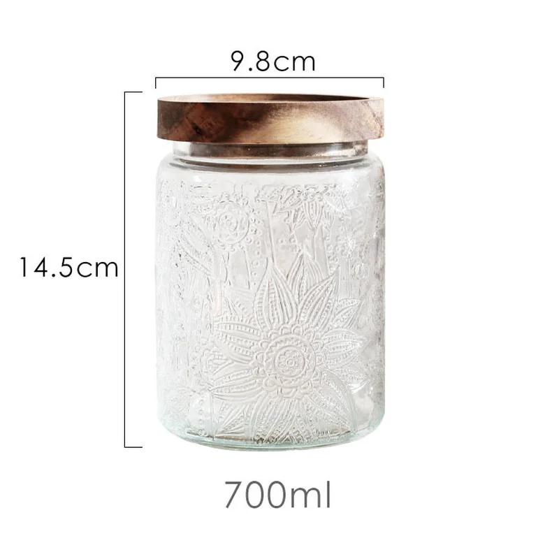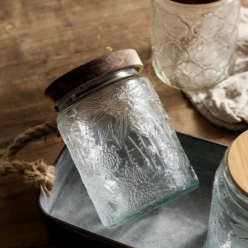 700ml szklany pojemnik z pokrywką pojemnik na cukier nakrętka ziarna kawy słoiki do przechowywania w wytłaczane kwiaty szkło puszka do herbaty pojemnik kuchenny do przechowywania żywności butelka cyny