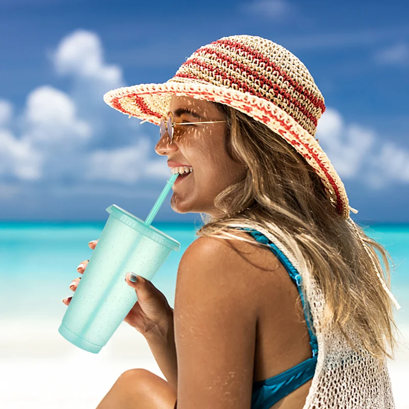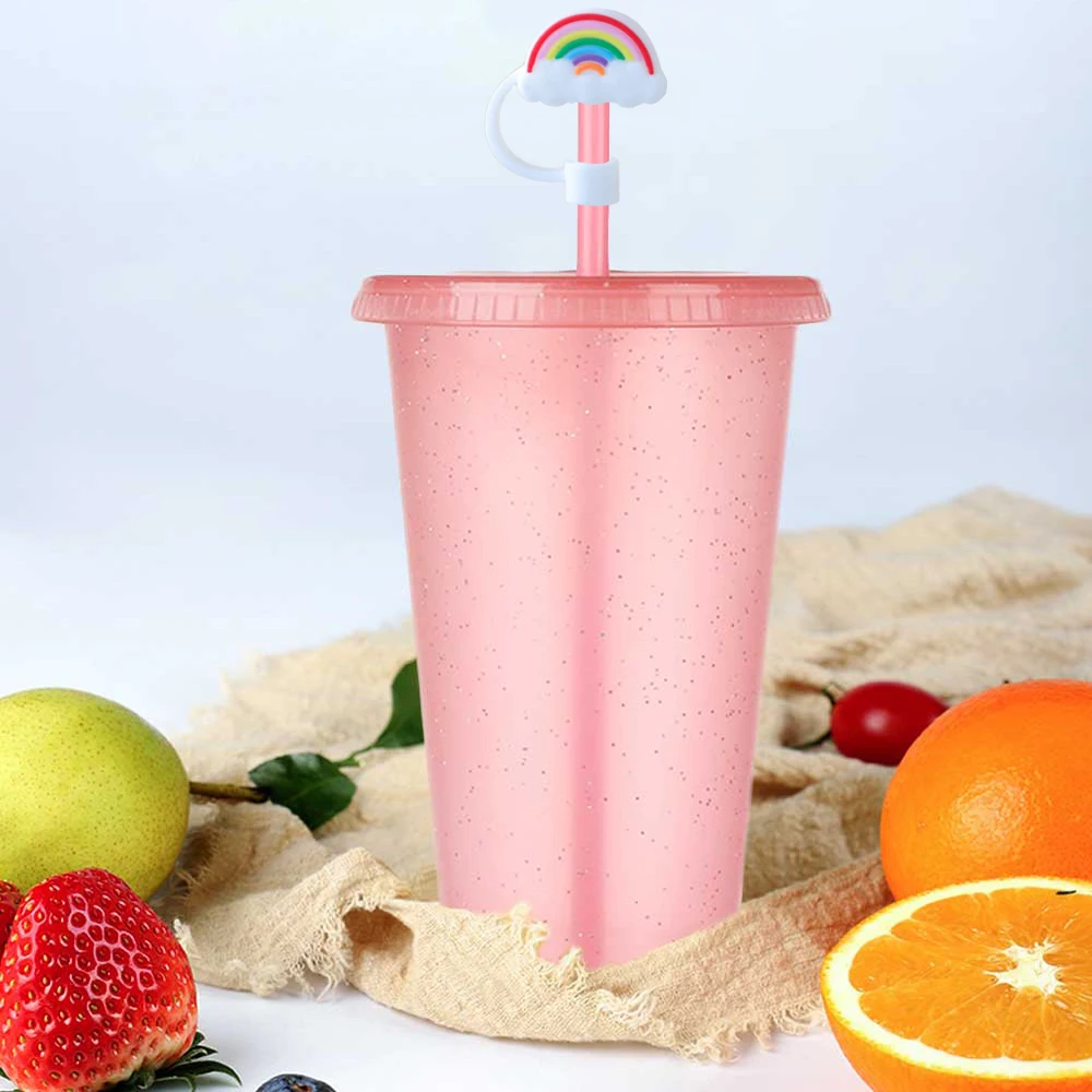 710ML Flash Powder butelka wody dla dziewczynek słomka wielokrotnego użytku kubek wody lato zimna butelka do picia kubek do soku kubek ze słomką prezent