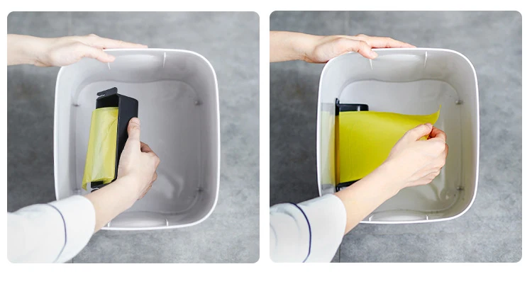 Otwieranie i zamykanie pokrywy kosz na śmieci nie będzie dużo hałasu, można go używać z ufnością. Przycisk włączania/wyłączania i