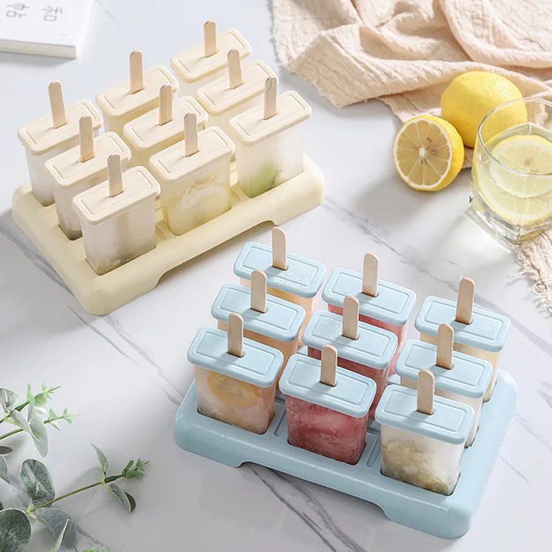9 komórki lodu forma na krem wielokrotnego użytku forma lodowa pudełko na czekoladki do lodów DIY formy deser formy do lodów forma na krem s z patyczek do lodów