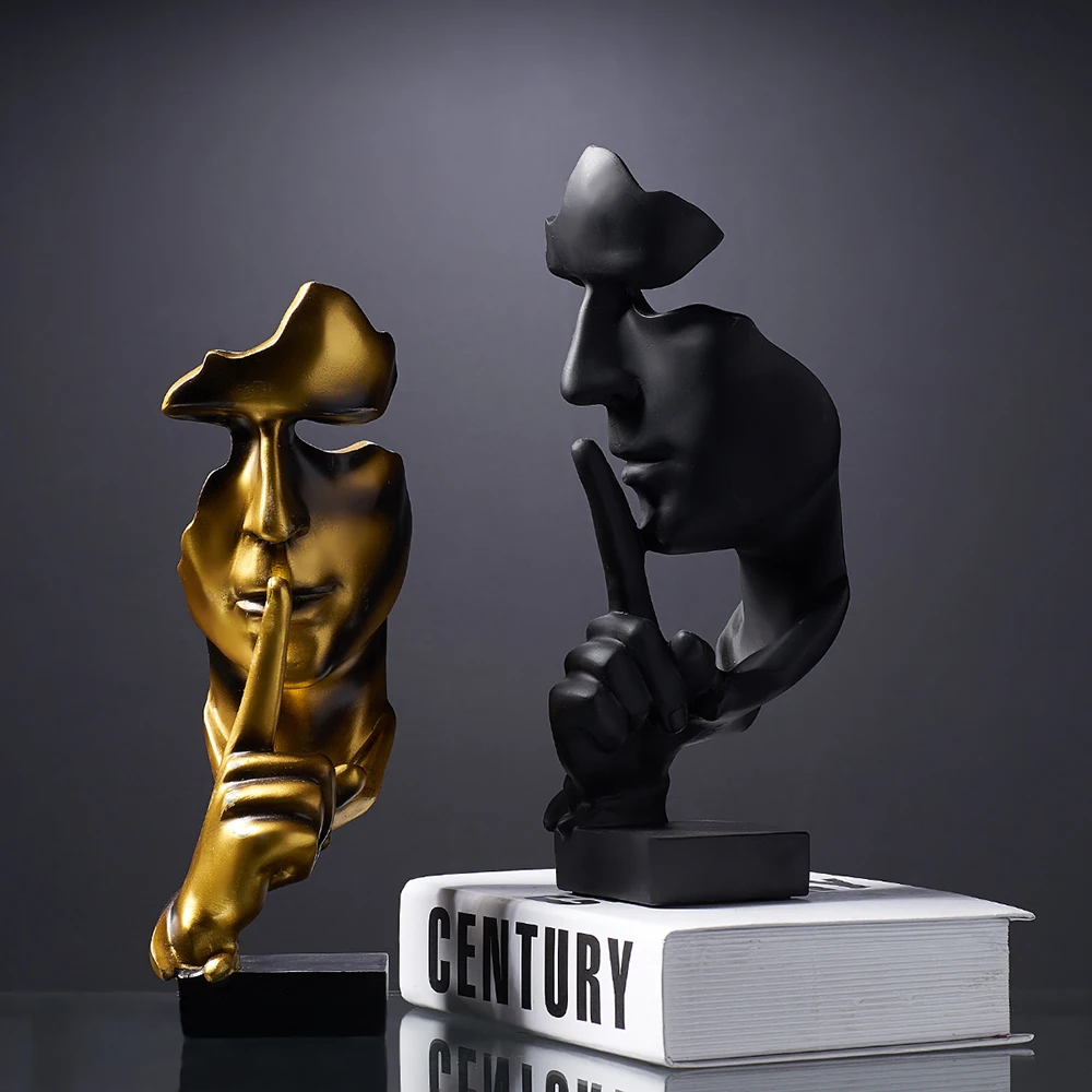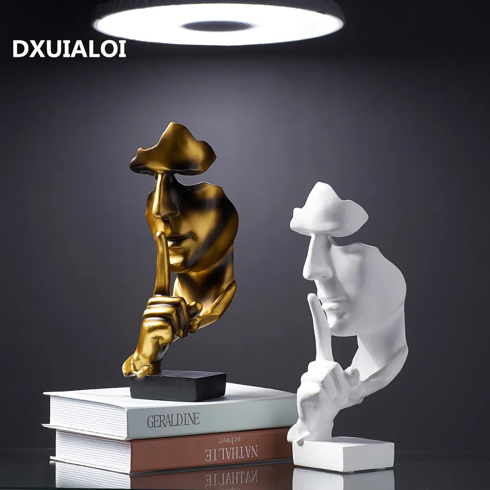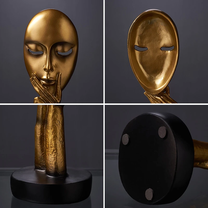 Akcesoria do dekoracji wnętrz cisza to złota statua na figurka dekoracyjna ludzkiej twarzy rzeźba abstrakcyjna dekoracja afrykańska