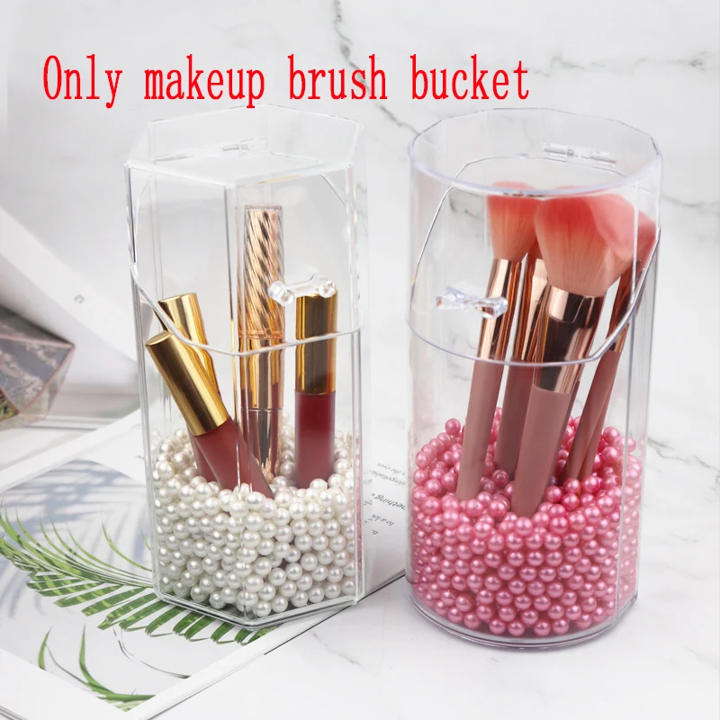 4. Ten akrylowy pojemnik na kosmetyki jest wyposażony w bezpłatny z białymi perłami, aby stojak na szczotki był wyprostowany i uporządkowany. Może pomieścić 15 ~ 20 pędzli o różnych rozmiarach.