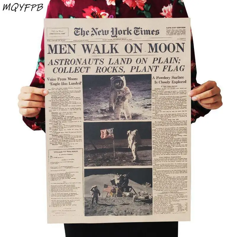 Apollo Moon Landing – New York Times nostalgiczny Retro plakat Kraft dekoracja wnętrz naklejka ścienna