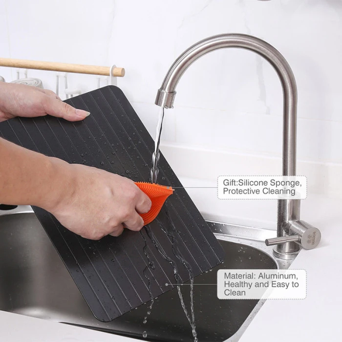 5. Zdrowe i trwałe:Taca do rozmrażania wykonana jest z aluminium spożywczego, skórka powłoki nie wyłącza się po umyciu, ma długą żywotność. Nadaje się do wszystkich rodzajów mrożonych mięs.