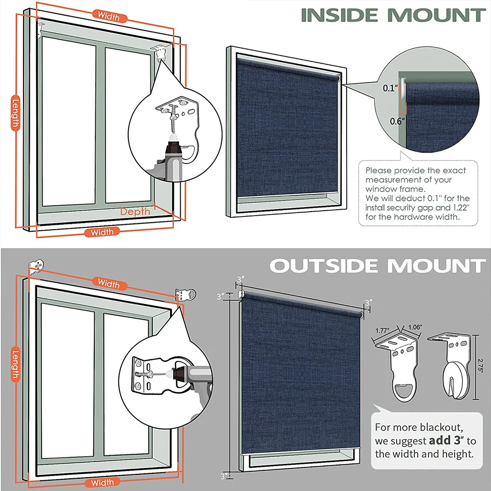2. Dostosowana szerokość żaluzji = szerokość tkaniny + szerokość wsporników (3 ~ 4cm) .