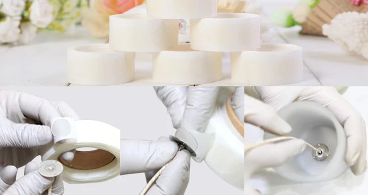Instrukcja użytkowania: zdejmij jeden i wklej go na bazie knota, naciśnij go, aby wkleić go mocniej, usuń białą naklejkę, wklej go na dno szkła lub na dnie słoika, naciśnij go ponownie, aby wkleić go szczelnie, nie spadając, I zwróć uwagę na wycieranie dna szkła.