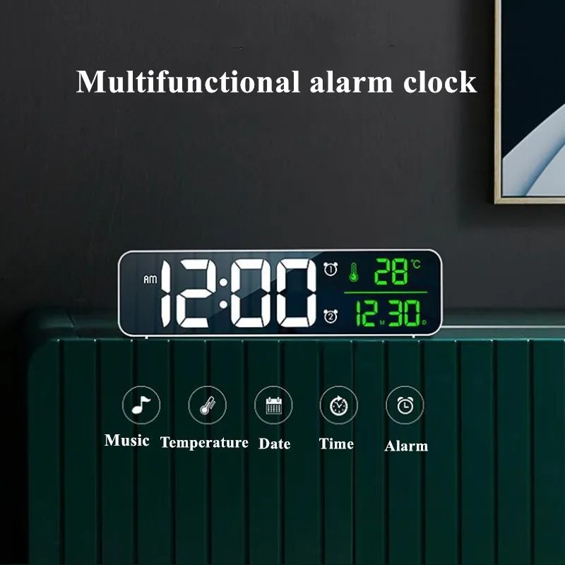 Cyfrowy budzik LED zegar drzemki temperatury wyświetlanie daty pulpit, USB lustro taśmy LED zegary ścienne dla pokoju gościnnego dekoracji