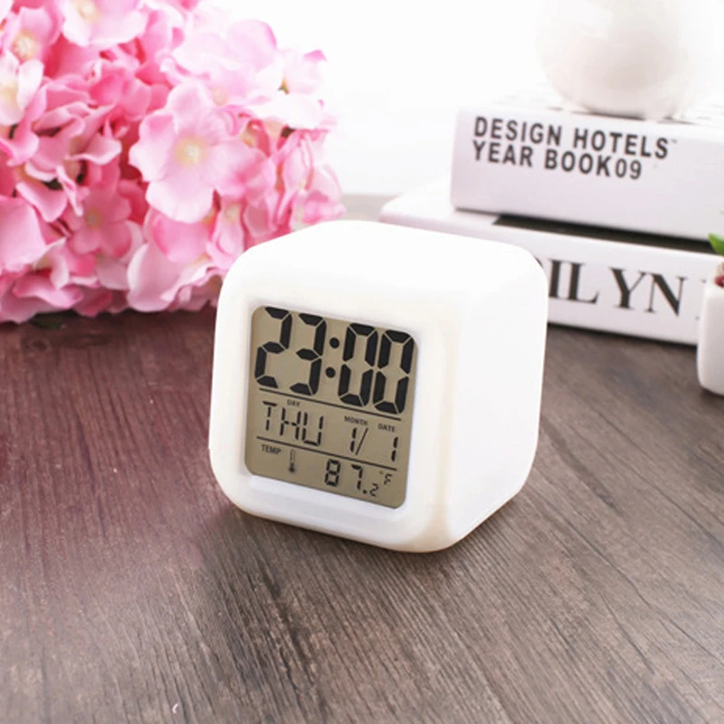 Cyfrowy kolorowy budzik pulpit dzwonek recepcyjny Mini mały zegar Led wyciszenie Luminous tabeli zegar elektroniczny