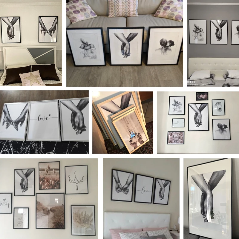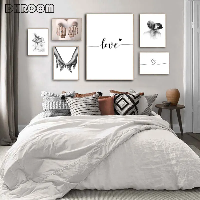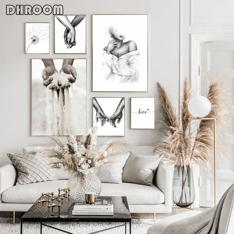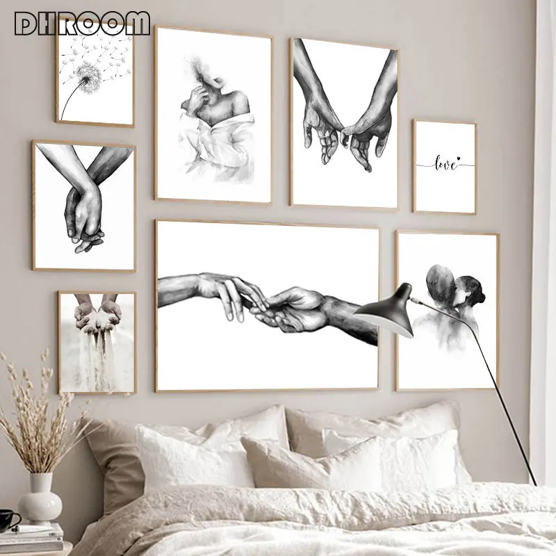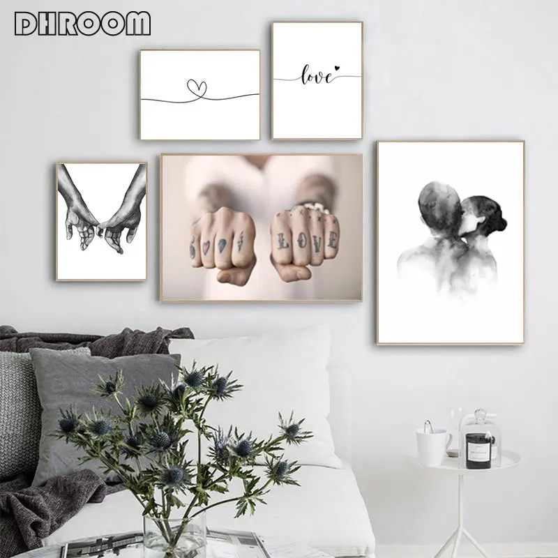 Czarny biały romantyczny ręka w rękę obraz na płótnie cytaty miłosne plakat artystyczny na ścianę modny obraz miłośnicy pary wystrój pokoju