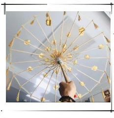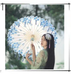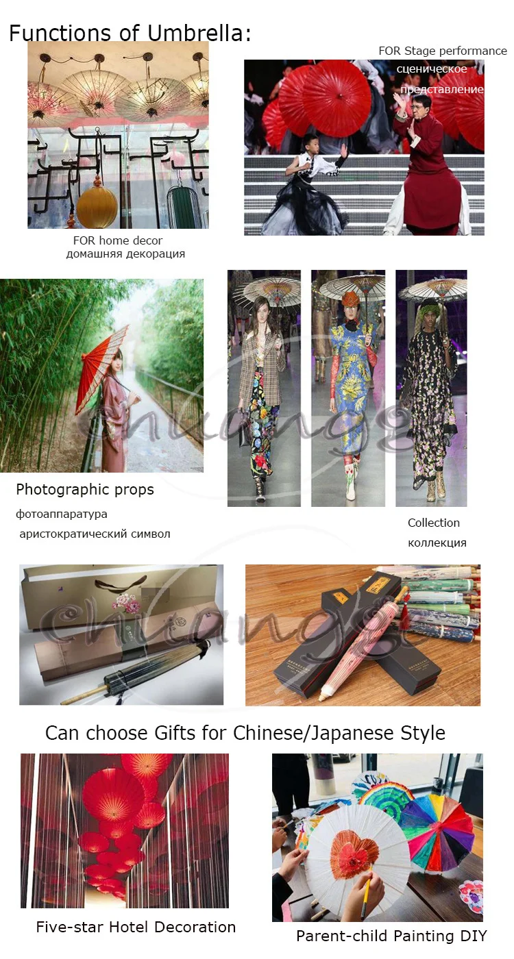 Wszystkie zdjęcia są inkrustowane, jedwabny parasol jest tak piękny jak papier dekoracyjny, kolor jest jasny i może być lekko wodoodporny. Papierowe parasole nie powinny dotykać wody.