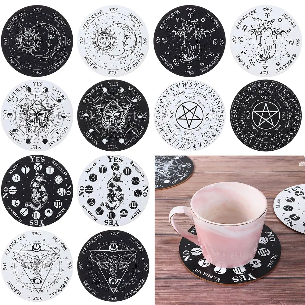 DIY drewniana tablica wahadłowa czarny biały kolor z gwiazdami słońce i księżyc do wróżenia tablica ogłoszeń metafizyczna dekoracja ołtarza