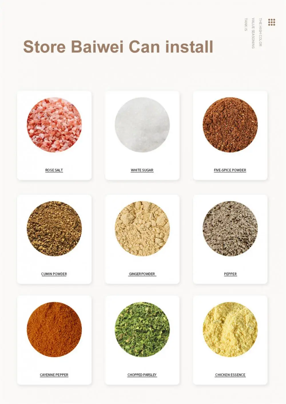 【Uses】 nadaje się do sól spożywcza, kminek w proszku, chili w proszku, cukru, papryka w proszku i różnych przypraw o małych cząstkach.