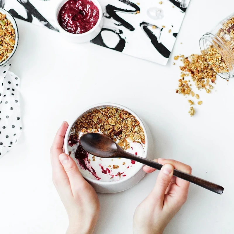 Te drewniane łyżki doskonale nadają się do jedzenia lub serwowania potraw z emaliowanych spodków, których nie chcesz drapać!