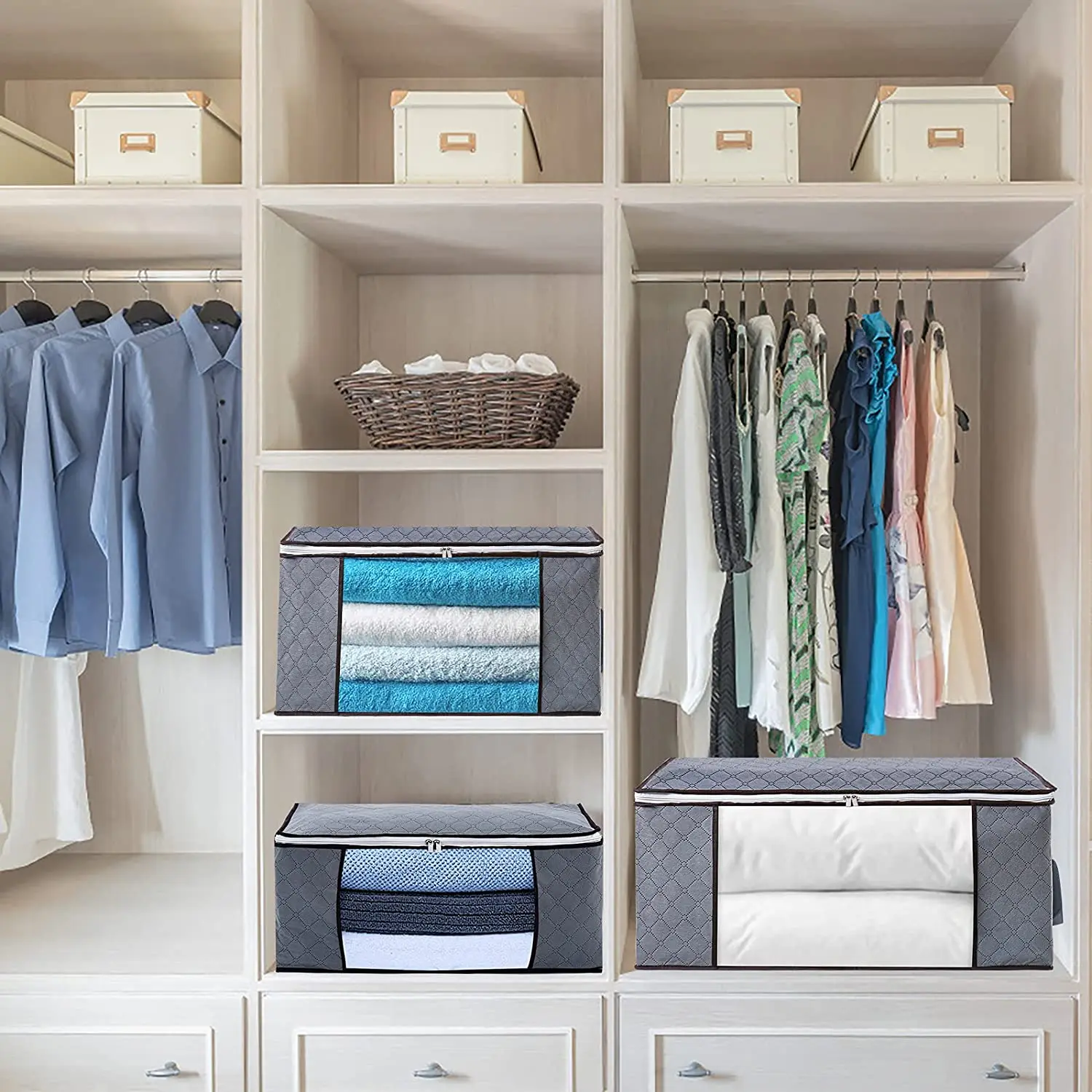 Duża pojemność torba na ubrania organizator do torby z uchwytem tkanina na kołdry koc pościel składana z zamkiem błyskawicznym przezroczyste okienko