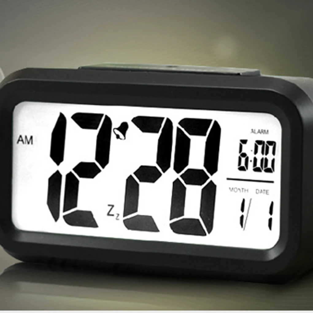 Ten cyfrowy zegar to inteligentny zegar i może włączyć miękki biały światło, gdy spadnie noc.