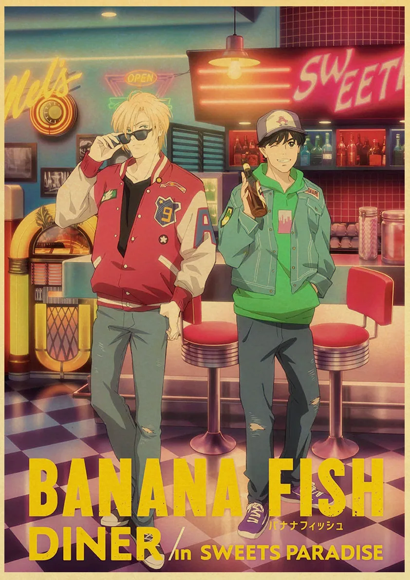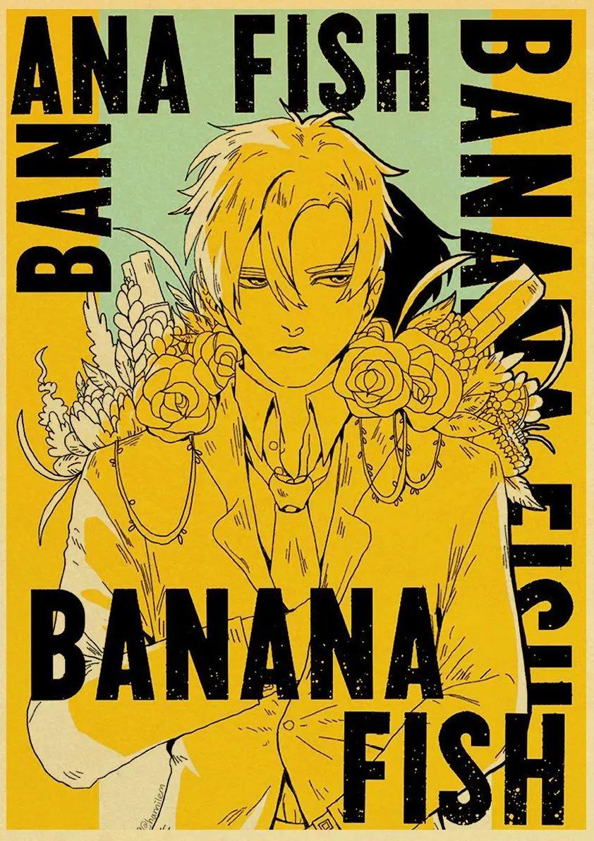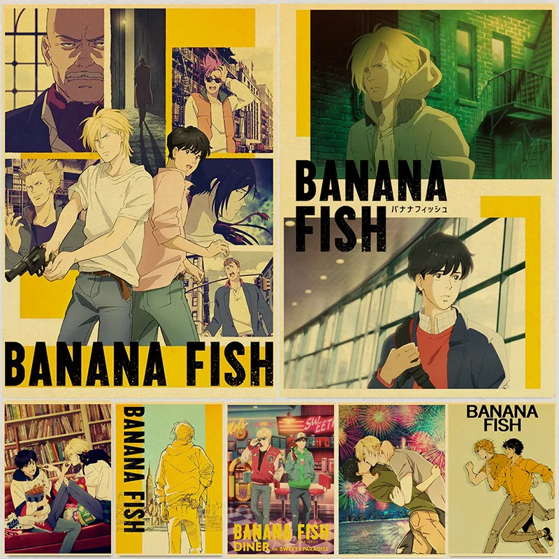 Japońskie Anime bananowe ryby Retro plakaty sztuka obraz z motywem filmowym papier pakowy drukuje naklejki ścienne wystrój pokoju