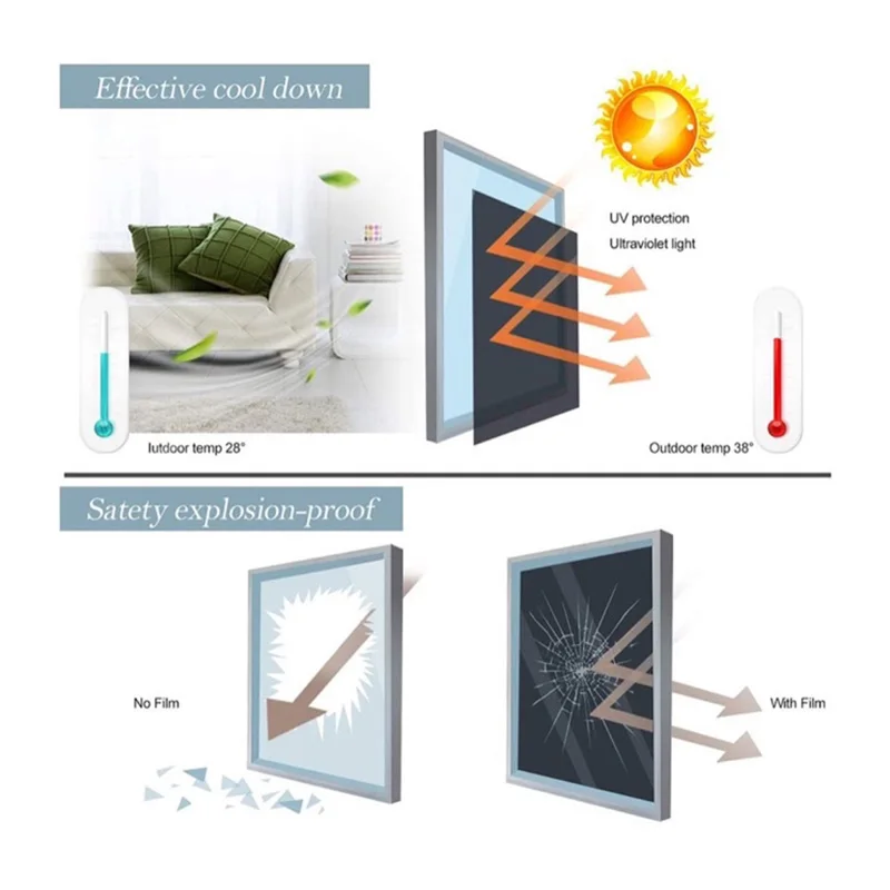 【Ochrona uv 】 ciągła ekspozycja na słońce spowoduje wysoką temperaturę pokojową, starzenie się mebli i oparzenia słoneczne na skórze. Folia termoizolacyjna, która może blokować 90% promieniowania UV i 50% ciepła. Może doskonale rozwiązać ten problem, a po użyciu poczujesz się wyraźnie chłodniej. Może również zaoszczędzić rachunek za energię elektryczną w klimatyzacji.