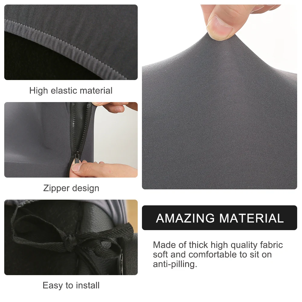 3. Łatwa instalacja: łatwo jest zainstalować pokrywę na krześle ze względu na wysoki elastyczny materiał. Również bardzo łatwe do usunięcia z krzesła.