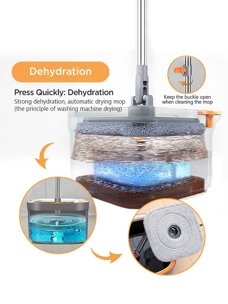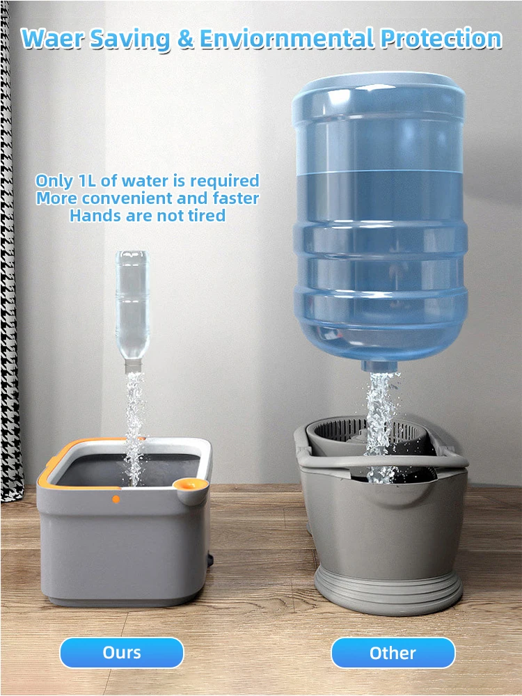 1. Oddzielić czyszczenia wodą i brudną wodą i obrócić mop do czyszczenia, aby naprawdę mop podłogi z czyszczenia wodą.
