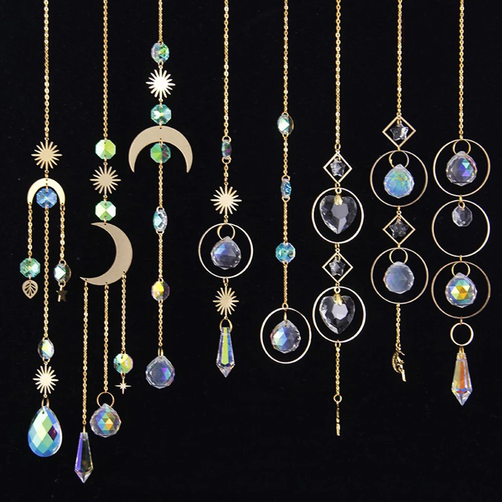 K9 Crystal Sun Catcher słońce i wisiorek z księżycem okno domu wiszący Ornament szklana wisząca pryzmaty Light Catcher Garden Decoration