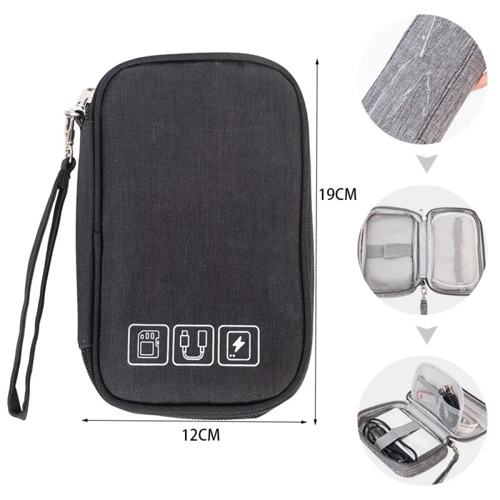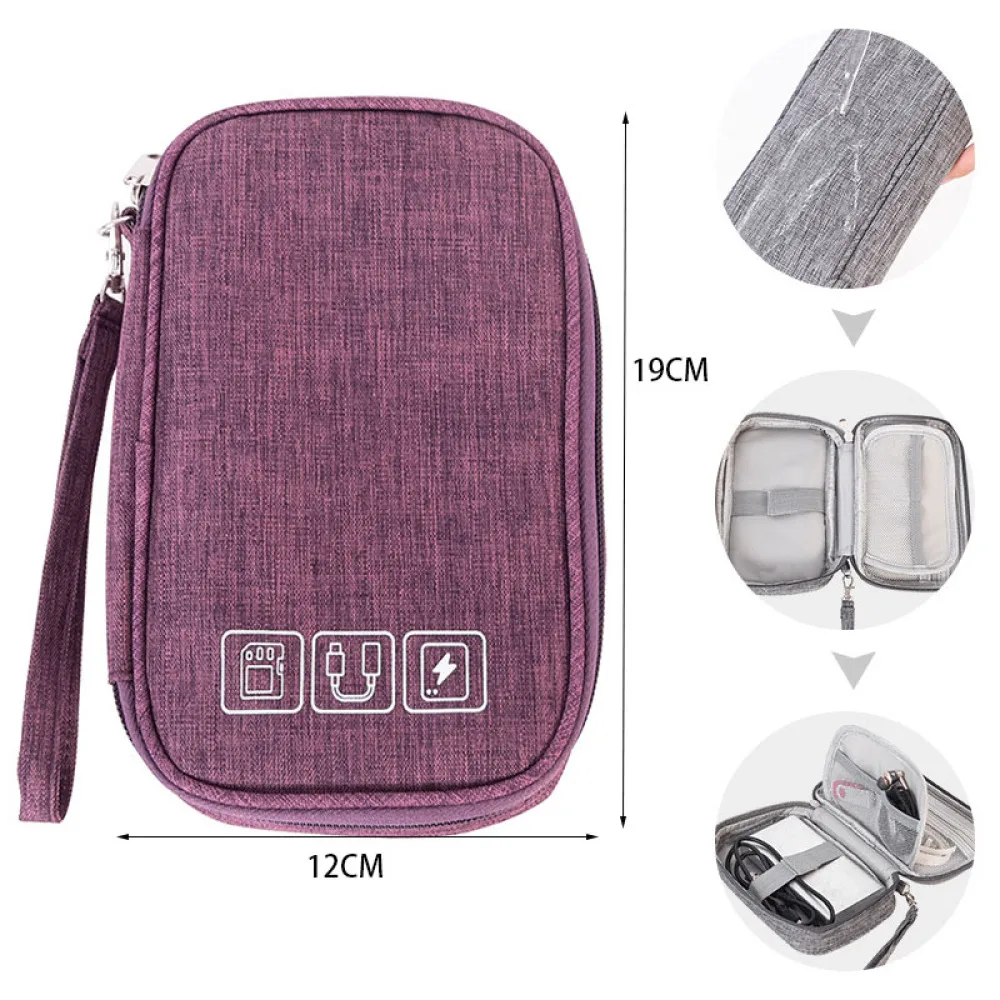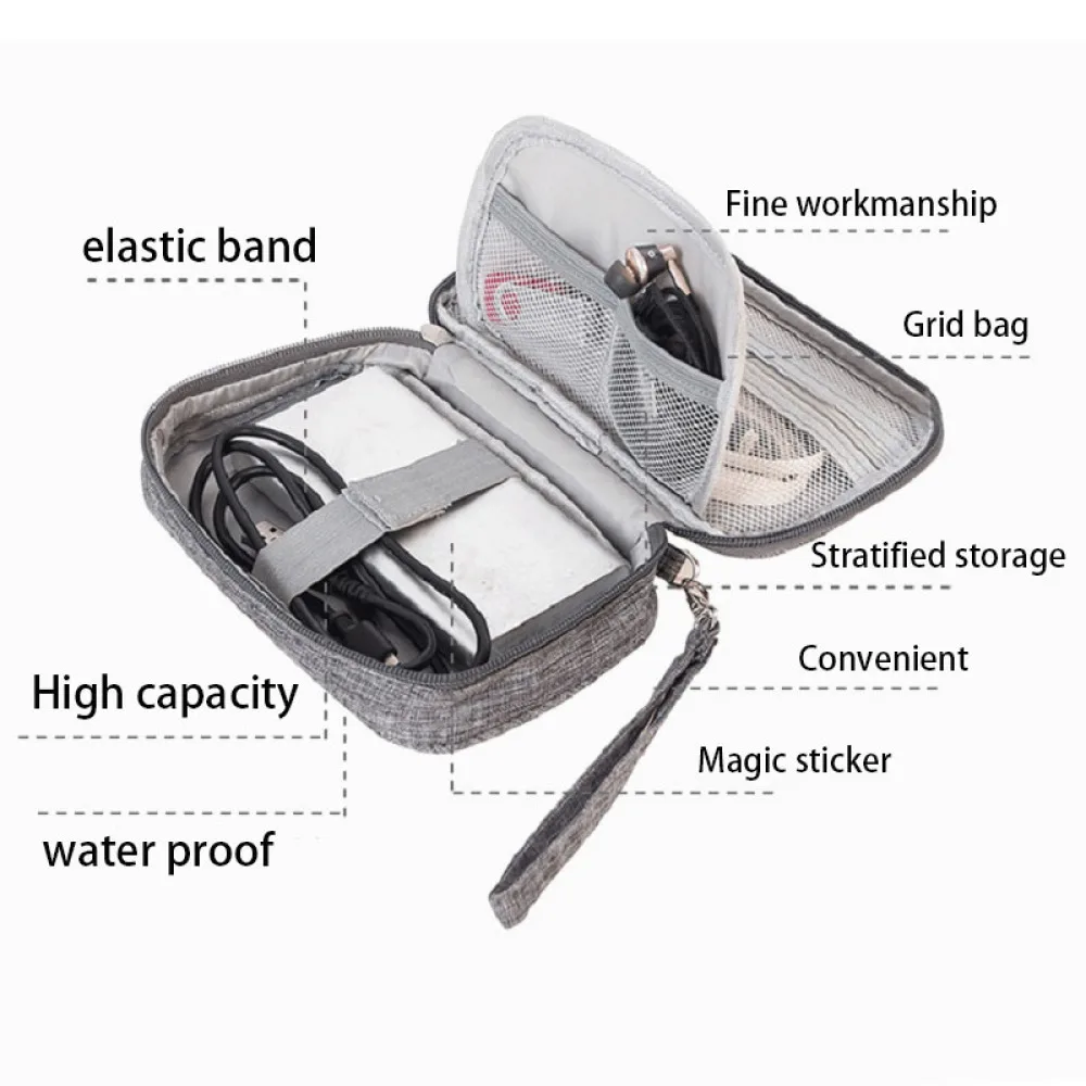 Przeznaczenie: kabel do transmisji danych, dysk U, torba do przechowywania ładowarki, duża pojemność, dzięki czemu każdy mały przedmiot ma swoją pozycję, wodoodporny materiał kationowy, lepszą ochronę obiektów; konstrukcja uchwytu sprawia, że podróż jest wygodniejsza.