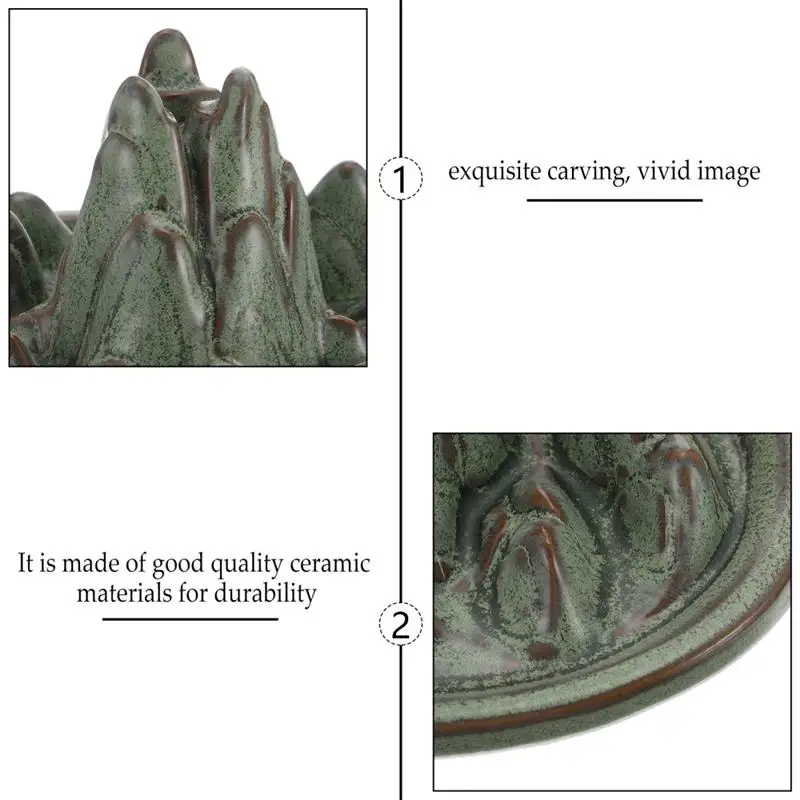 Wykonany z najwyższej jakości materiał ceramiczny, może być używany przez dłuższy czas. Kreatywny kształt, tajemnicza atmosfera. Zapalił kadzidło, czyste powietrze, odświeża, utrzymuje przyjemne ciało i umysł. Nadaje się do domu, biura, herbaciarni, medytacji itp.
