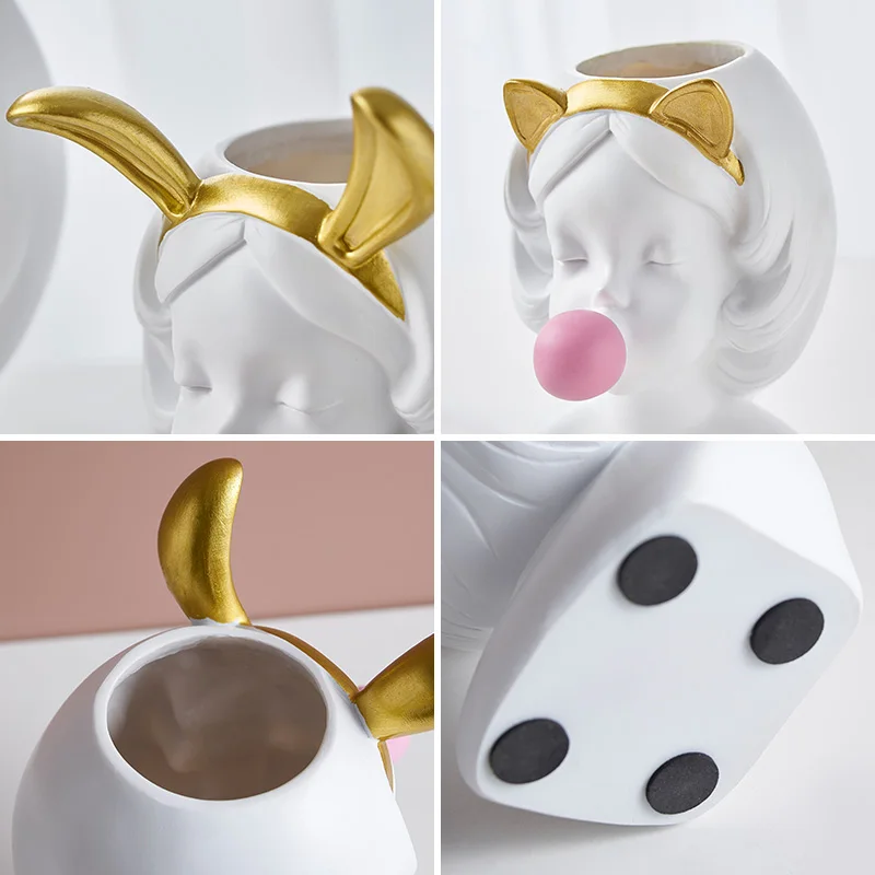Kawałek styl skandynawski żywica ludzka twarz wazon ładna dziewczyna guma balonowa doniczka dekoracyjna soczysty kwiat garnek wystrój domu Tabletop