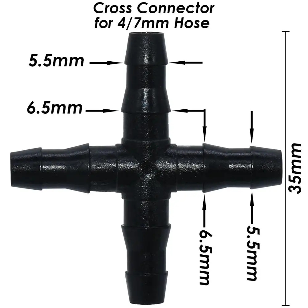 KESLA 10-100 sztuk 1/4 ”krzyż złącze dla 4/7mm Micro wąż 4 sposoby kolczasty Adapter nawadniania kropelkowego krzyż wspólne złącza