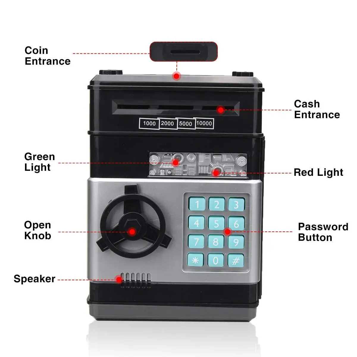 Specyfikacja: Nazwa:Zamek szyfrowy skarbonka kod kluczowe monety gotówka oszczędzanie skarbonka licznik prezent Model:788810 Materiał: akrylonitryl-butadien-styren (ABS) Napięcie: 4.5V(3 x bateria AA, brak w zestawie) Kolor: czarny Rozmiar: 13x12x19cm Cechy: * Wykonany z wysokiej jakości materiału akrylonitryl-butadien-styren (ABS), ochrona środowiska, nietoksyczny. * Automatyczne zwijanie banknotów, wkładanie papierowe pieniądze do gniazda rolki, automatycznie zwija je do pudełka. * Również z otworem na monety w górnej części pudełka, który zapewnia zapisywanie wszelkiego rodzaju monet. * Projektowanie haseł, spraw, aby twoja „własność” była bardziej ubezpieczona, a hasło można modyfikować. * Po otwarciu drzwi pojawia się dźwięk ostrzegawczy, który blokuje się automatycznie po zamknięciu. * Pielęgnuj poczucie oszczędzania pieniędzy przez dzieci, naucz się zarządzać pieniędzmi. * Dobry prezent dla dzieci. Sposób użycia: Wprowadź czterocyfrowe hasła (domyślnie 0000), zielone światła włączone, a następnie obróć pokrętło zgodnie z ruchem wskazówek zegara, aby otworzyć drzwi. Jak zmienić hasło: Naciśnij przycisk „*”, aby wprowadzić hasło, które chcesz zmienić, naciśnij przycisk „#”, aby zakończyć, jeśli zapomnisz po haśle Jest zmieniony, możesz wyjąć baterię na pół godziny, aby przywrócić domyślne hasło fabryczne 0000. Pakiet zawiera: 1 x skarbonka 1 x śrubokręt 1 x instrukcja w języku angielskim |