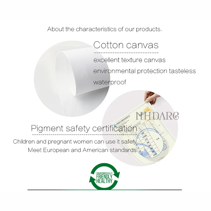 1. Materiał: ekologiczne bawełniane płótno-wodoodporne, nigdy nie znikną, można wytrzeć