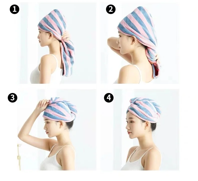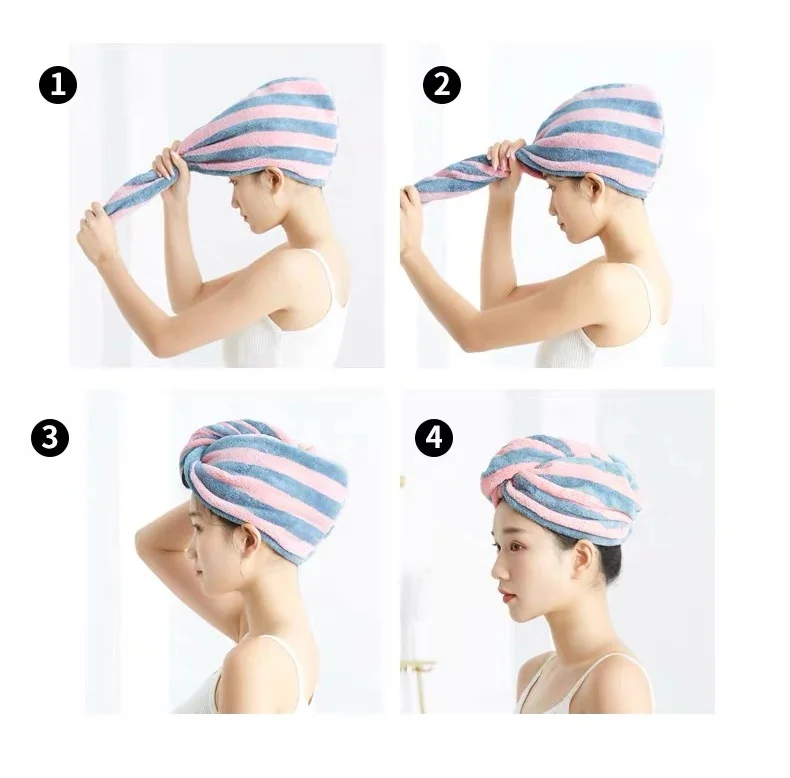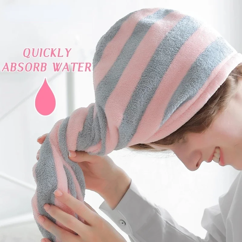 Kobiety dziewczęta ręczniki łazienka ręcznik z mikrofibry w paski ręcznik do włosów magiczna mikrofibra czepek prysznicowy Lady Turban Head