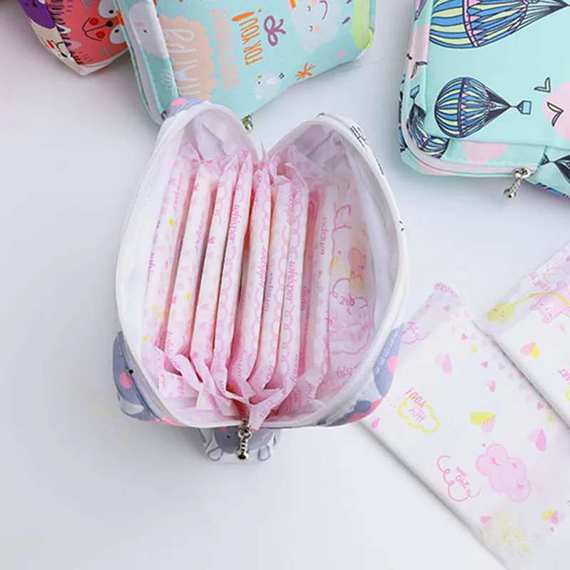 Kobiety dziewczyna torebka na podpaski schowek na ręczniki torba makijaż podróż Zipper kosmetyczka szminka słuchawki Tampon przechowywanie uchwyt torby