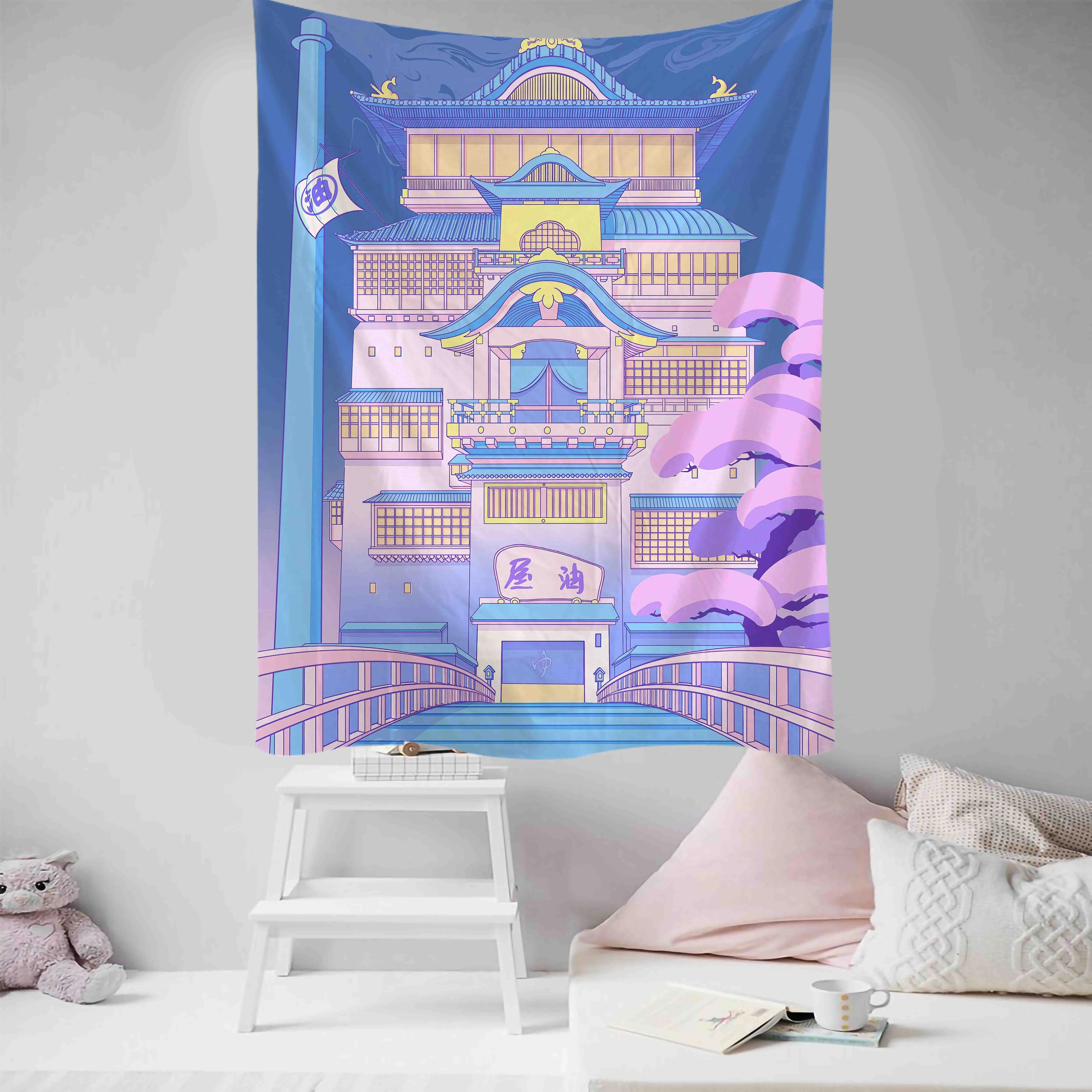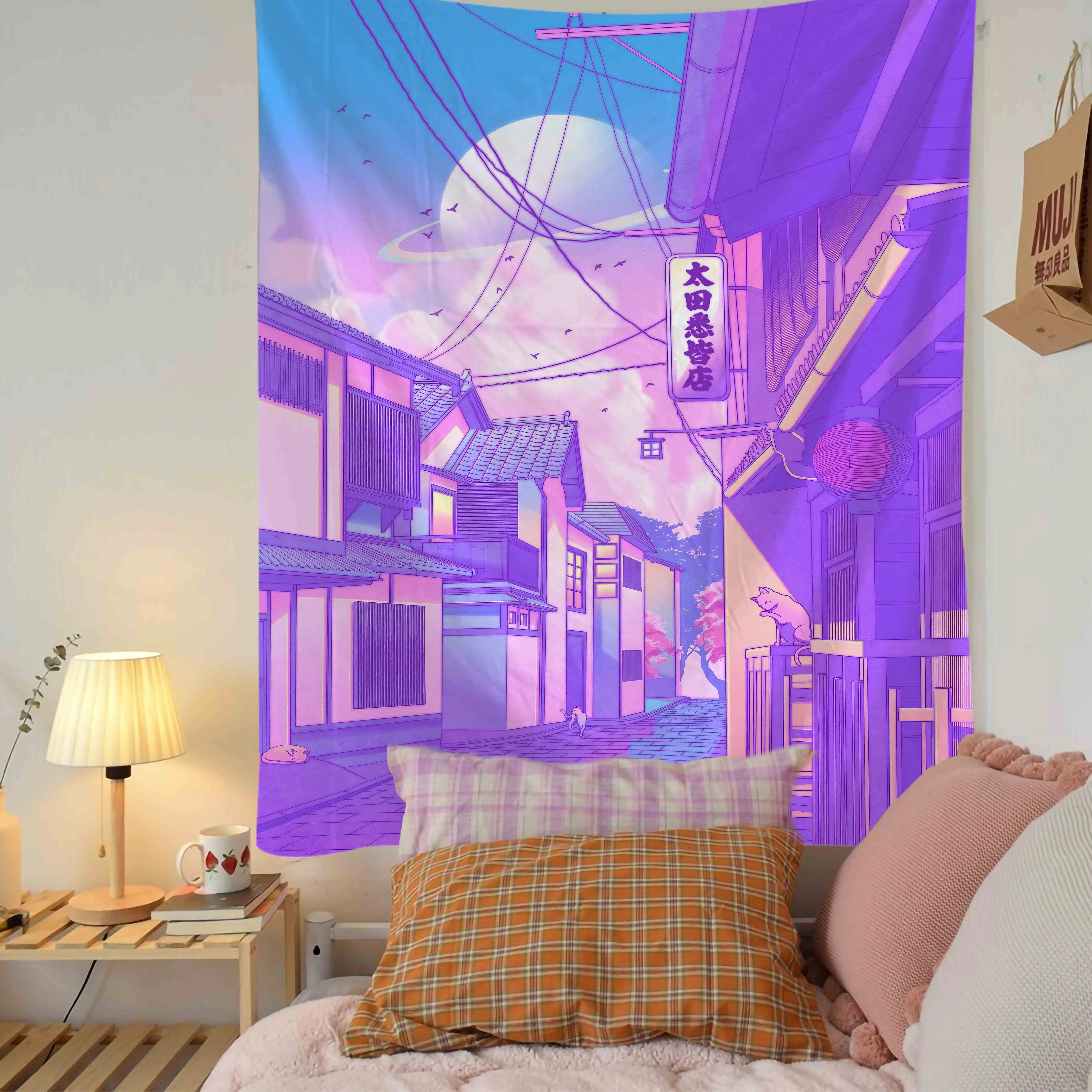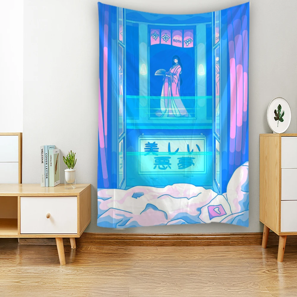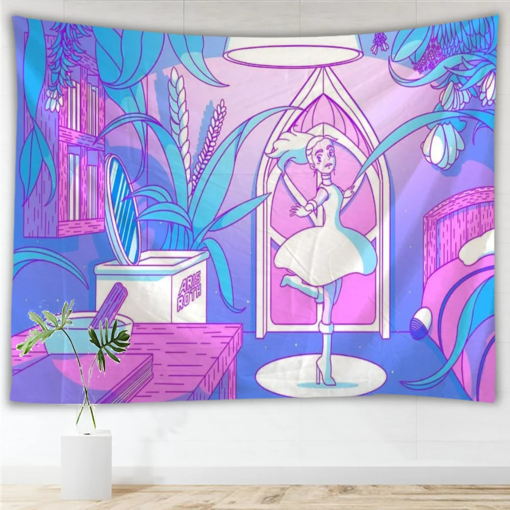 Komiks Kawaii dekoracja pokoju gobelin Hippie romantyczna koronkowa ściana wisząca świeża Anime estetyczna dekoracyjna gobelin
