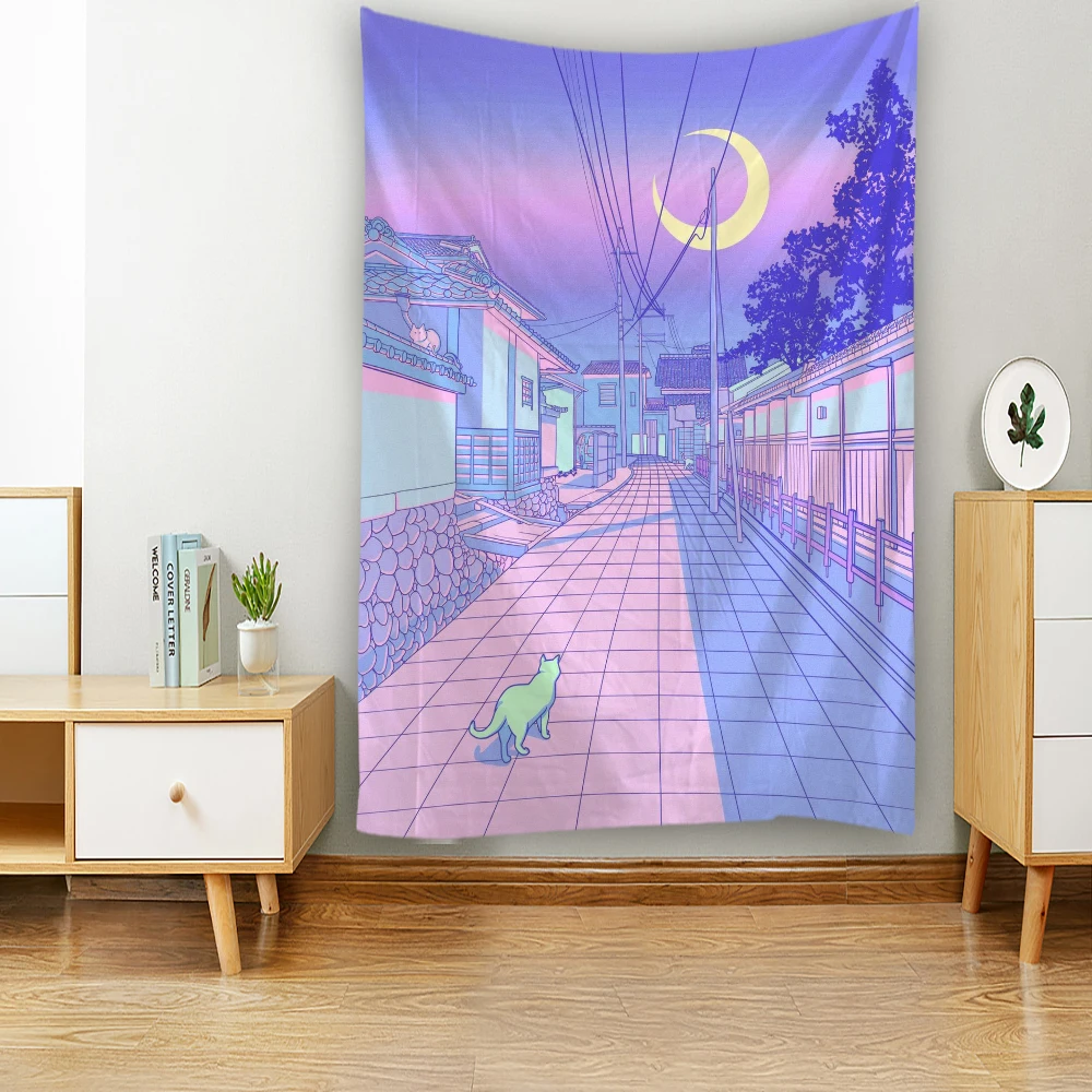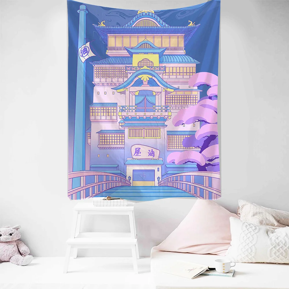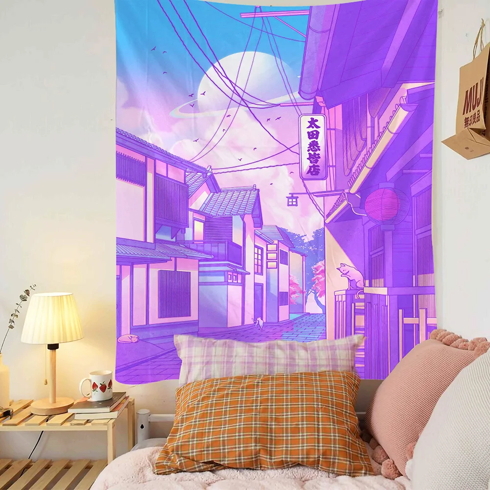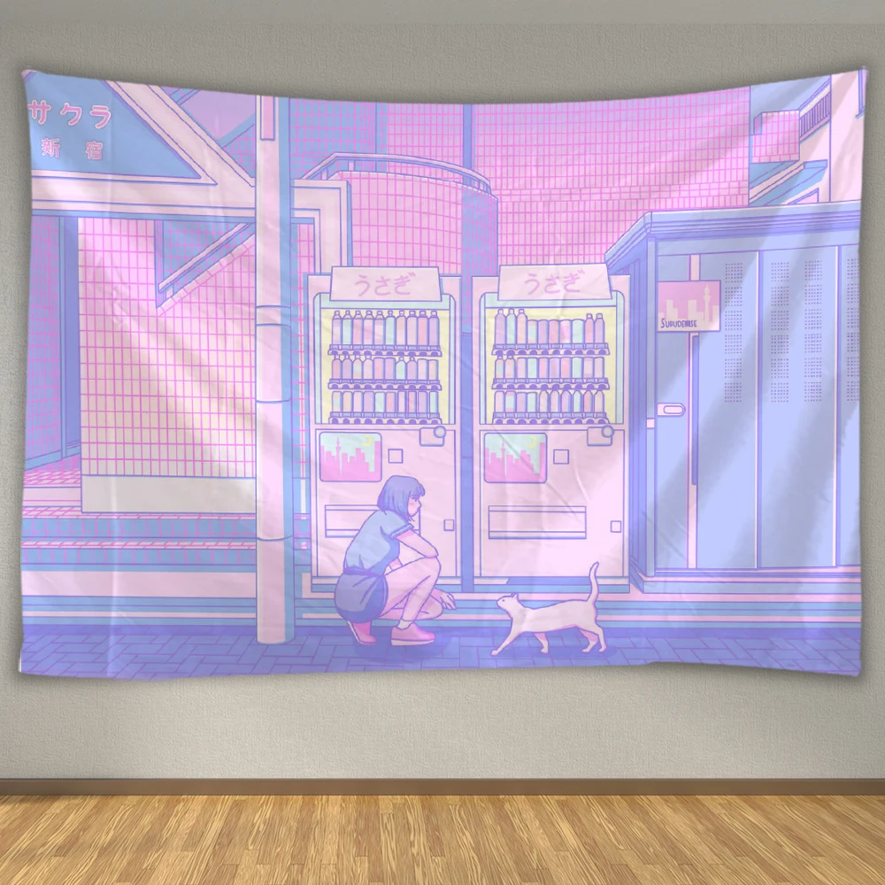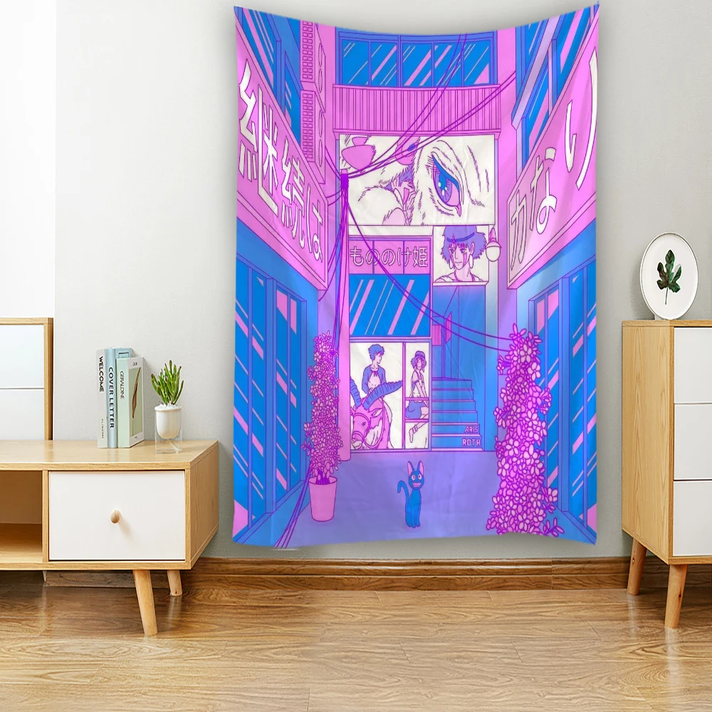 Komiks Kawaii dekoracja pokoju gobelin Hippie romantyczna koronkowa ściana wisząca świeża Anime estetyczna dekoracyjna gobelin