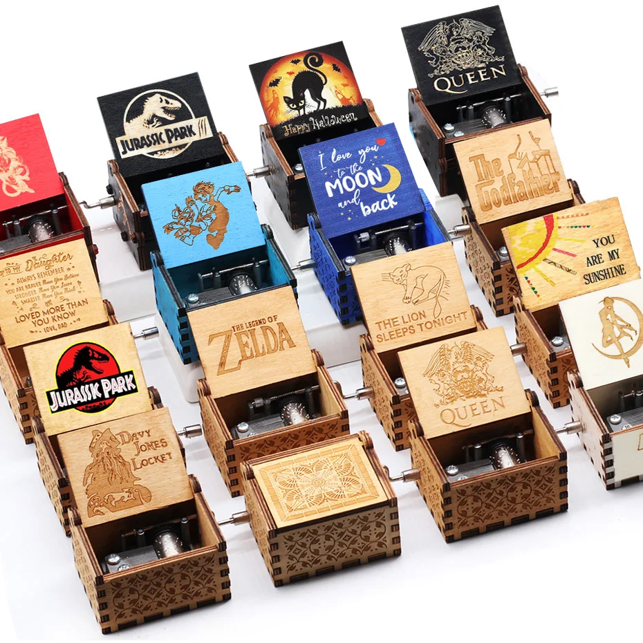 Obietnica Neverland Music Box Edelweiss jesteś moje słoneczko Demon Slayer Park jurajski Totoro ojciec chrzestny prezent na boże narodzenieHurtownie La Casa De Papel Bella Ciao drewniana ręka korba pozytywka mechanizm Davy Jones John Lennon zamek w niebie anioł