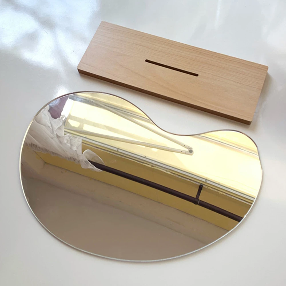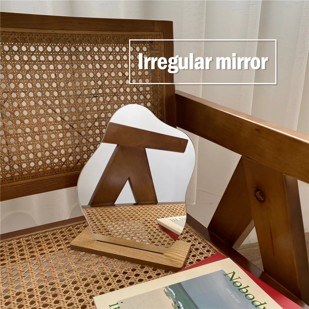 Koreański styl lustro do makijażu Ins nieregularny akryl lustro ozdobne drewniane podstawy kosmetyczne de maquillaje przybory kosmetyczne Dropshipping