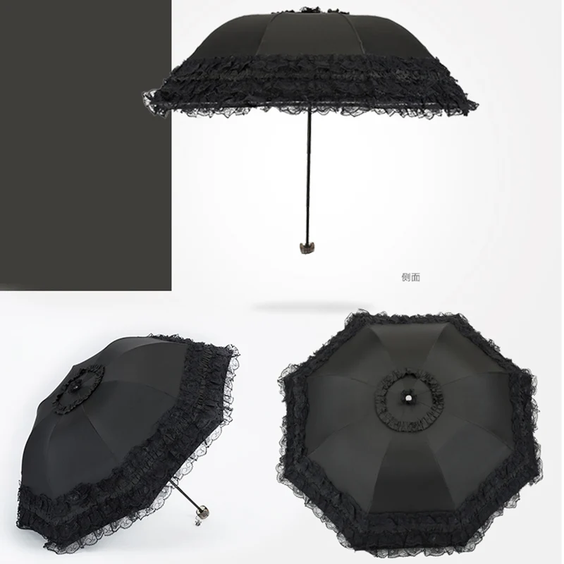 Koronkowe kobiety Parasol przeciwdeszczowy słońce Paraguas mujer czarny Parasol składany księżniczka guarda chuva invertido ochrona UV dekoracja