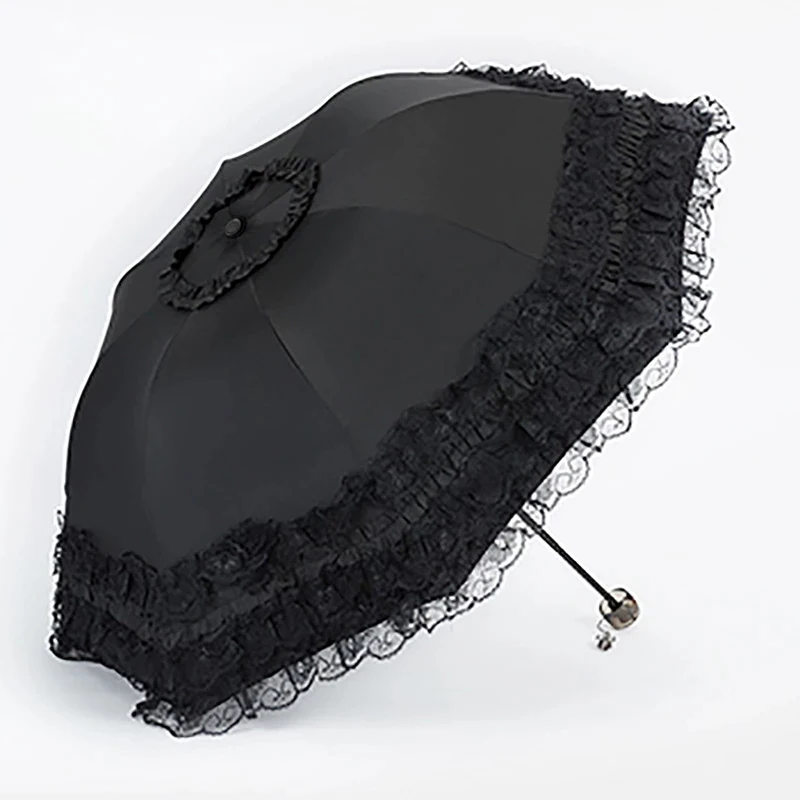 Koronkowe kobiety Parasol przeciwdeszczowy słońce Paraguas mujer czarny Parasol składany księżniczka guarda chuva invertido ochrona UV dekoracja