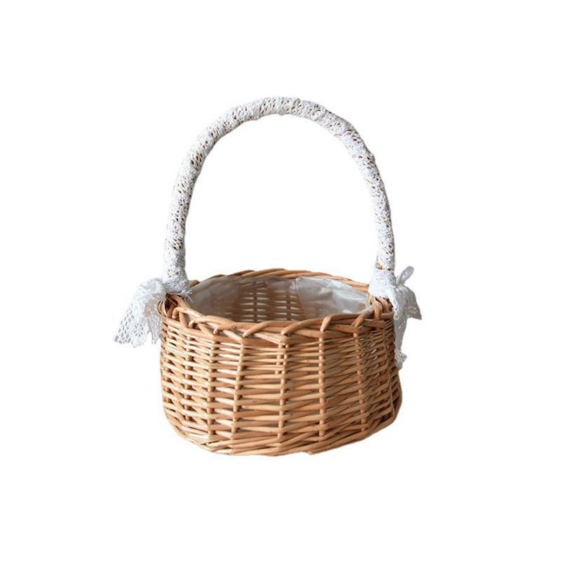 1. Koronkowy kosz ma wyjątkowe koronki i tkane rattanowe elementy.