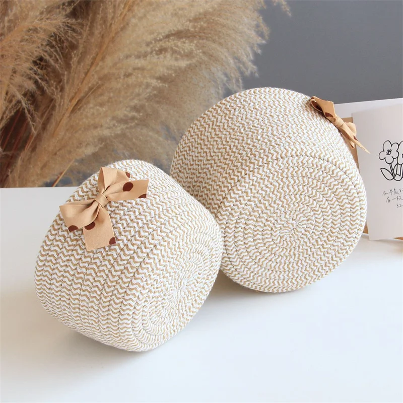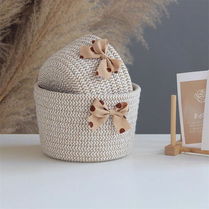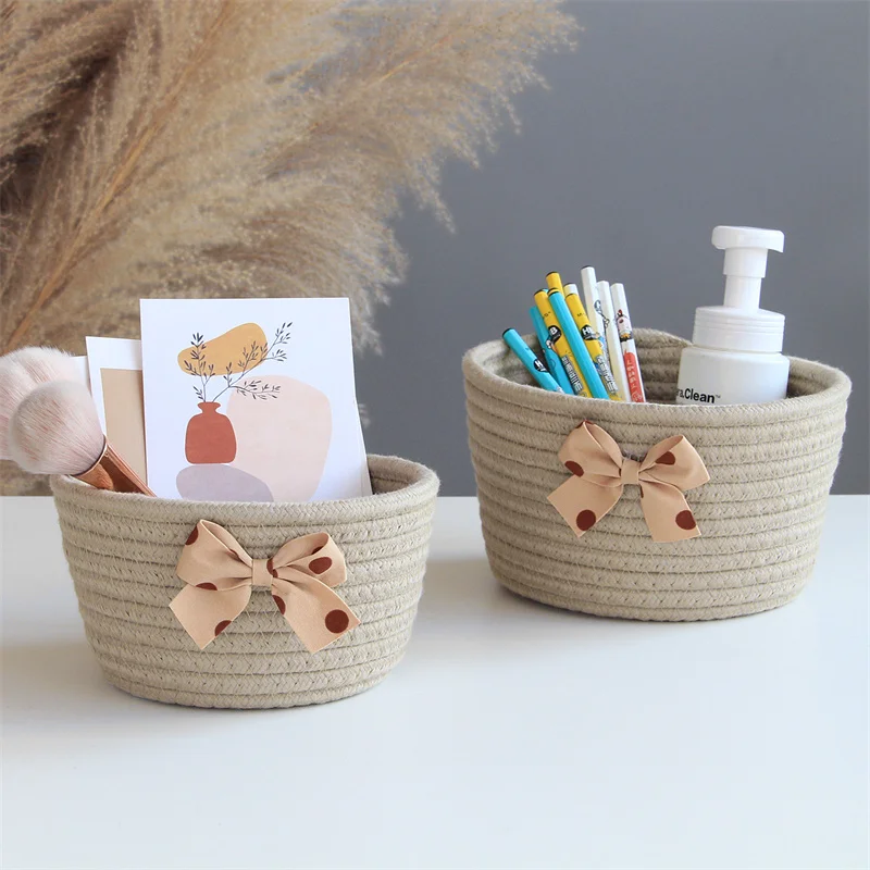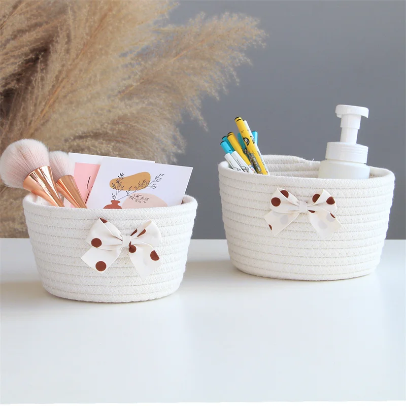 Kosz na bieliznę bawełnianą Bowknot tkactwo Nordic rozmaitości zabawki dla niemowląt brudne ubrania kosze wykończeniowe pulpit mały Organizer Box