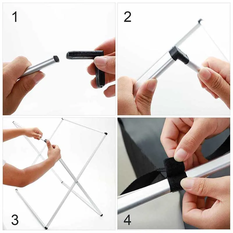 Konstrukcja ramy w kształcie litery X, składana, gdy nie jest używana, łatwa do przechowywania