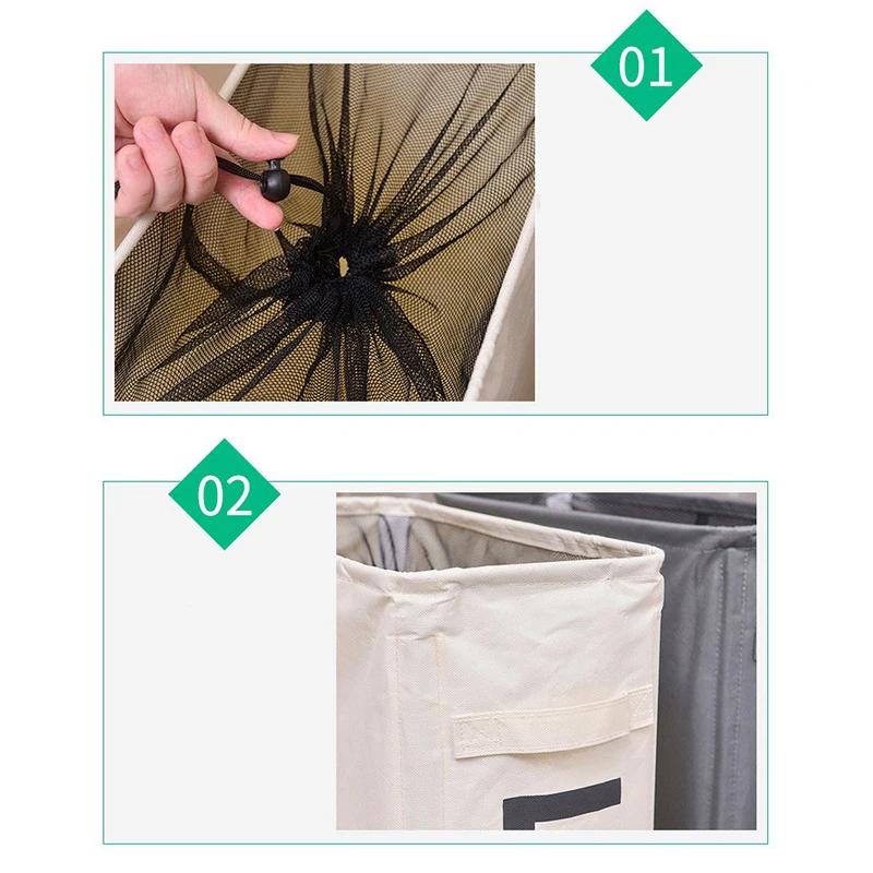 Wodoodporna osłona z PE dodaj do środka ekologiczny materiał utrzymuje wilgoć z dala od kwadratowego kosz na pranie. Siateczkowa ściągana sznurkiem pokrywa utrzymuje rzeczy wewnątrz kosz na pranie czyste i uporządkowane;
